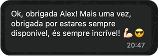 Se no final sentires que não entreguei o que prometi envia um e-mail para connect@alexmonteiro.pt , terei todo o gosto em analisar o teu caso com toda a consideração.