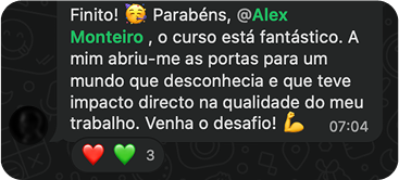 Estas aulas mudaram a forma como vejo o meu trabalho e deram-me a confiança que faltava para me posicionar e valorizar como designer.