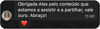 O Alex ajudou-me a ganhar clareza, confiança e a reposicionar o meu trabalho como freelancer de forma alinhada com quem eu sou e com os meus objetivos.