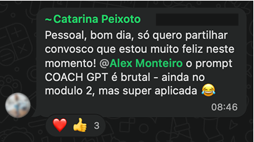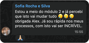 A minha experiência na mentoria foi muito superior ao que esperava inicialmente. O que me surpreendeu foi a forma como conseguiu unir teoria e prática de maneira clara e acessível. Desde os processos estratégicos que utiliza até aos documentos que entrega aos seus clientes finais, existe uma coerência admirável entre o que faz e o que diz.